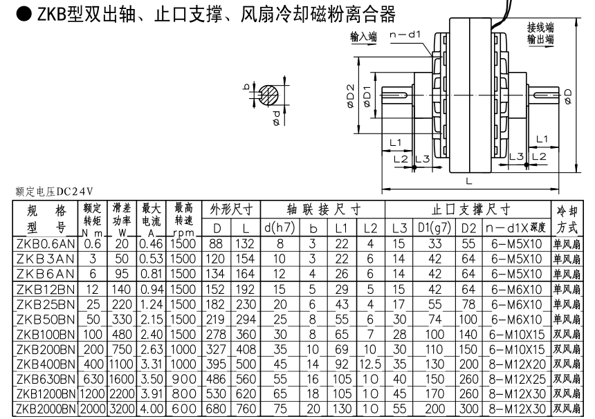 晨港機電ZKB型雙出軸止口支撐風扇冷卻磁粉離合器標準參照日本三菱電機ZKB-AN和ZKB-BN,產品規(guī)格型號和日本原裝產品一致,在性能使用上可以替代日本原裝產品,降低設備維護與制造成本。目前ZKB雙出軸磁粉離合器有:0.6N.m 3N.m6N.m 12N.m 25N.m 50N.m 100N.m 200N.m 400N.m 630N.m 1200N.m 2000N.m多種扭矩。